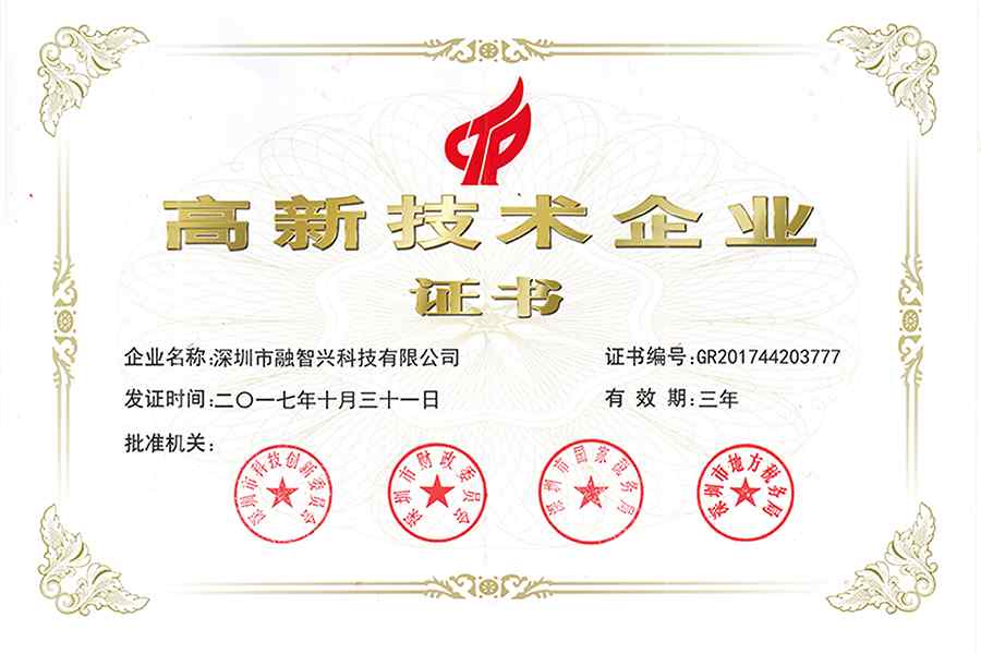 融智興從成立之初就非常重視技術(shù)創(chuàng)新,每年在產(chǎn)品研發(fā)及技術(shù)升級(jí)上投入重金,獲得了數(shù)十項(xiàng)實(shí)用新項(xiàng)專利及7項(xiàng)發(fā)明專利及2項(xiàng)軟件著作權(quán),于2014年獲得深圳市高新技術(shù)企業(yè)及國(guó)家高新技術(shù)企業(yè)認(rèn)證證書(shū),2017年通過(guò)相關(guān)部門(mén)的嚴(yán)格復(fù)審,再次獲得國(guó)家高新技術(shù)企業(yè)的稱號(hào)。