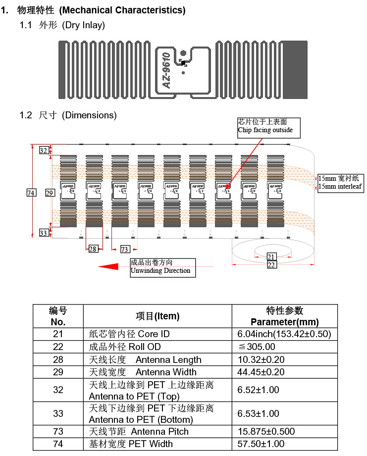 | 封裝材料 | 銅版紙(PET基材)+鋁蝕刻+不干膠(可打印、可印刷、熱敏紙) |